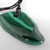Sehr schöner naturbelassener, ungeschliffener dunkelgrün funkelnder Uwarowit, in kräftiger grüner Farbe. Die Rückseite ist für ein angenehmes Tragegefühl geschliffen. Grösse: 22x5x9mm. Seitlich gebohrt, inklusiv Lederband.